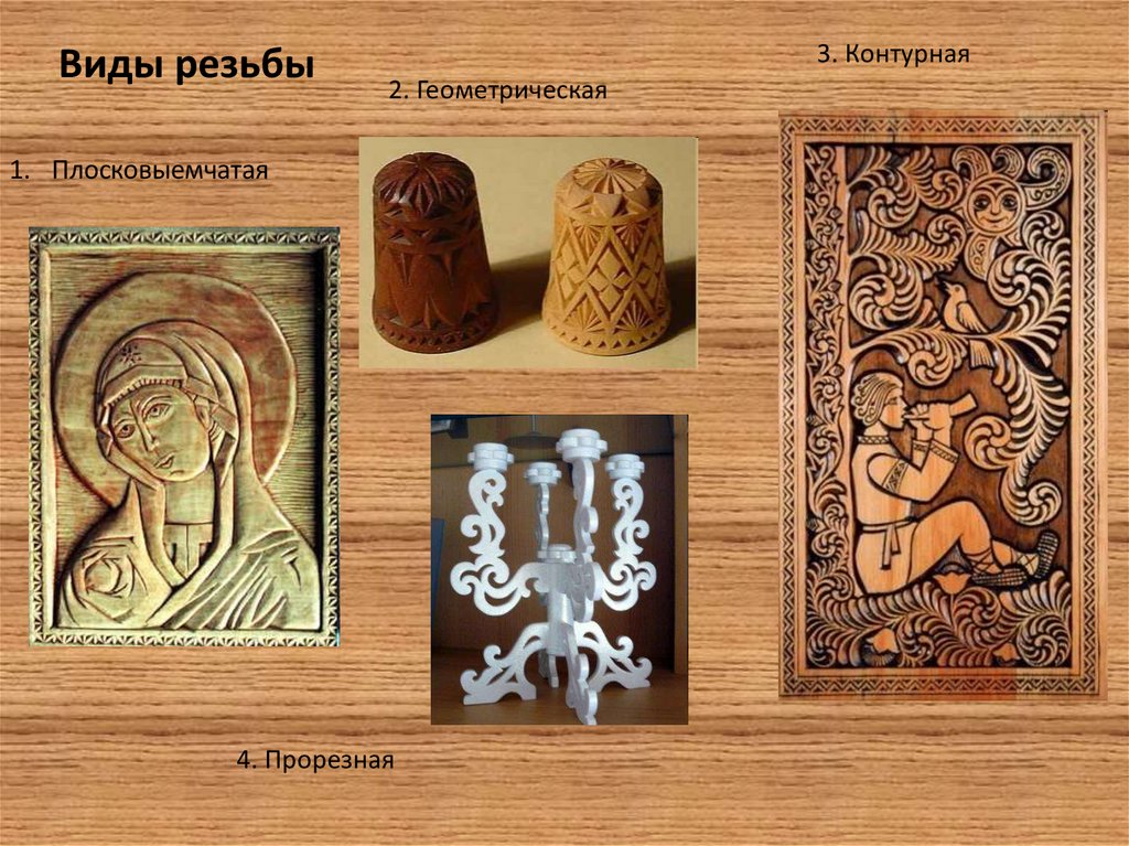 Плосковыемчатая и контурная резьбаиспользуется в основном