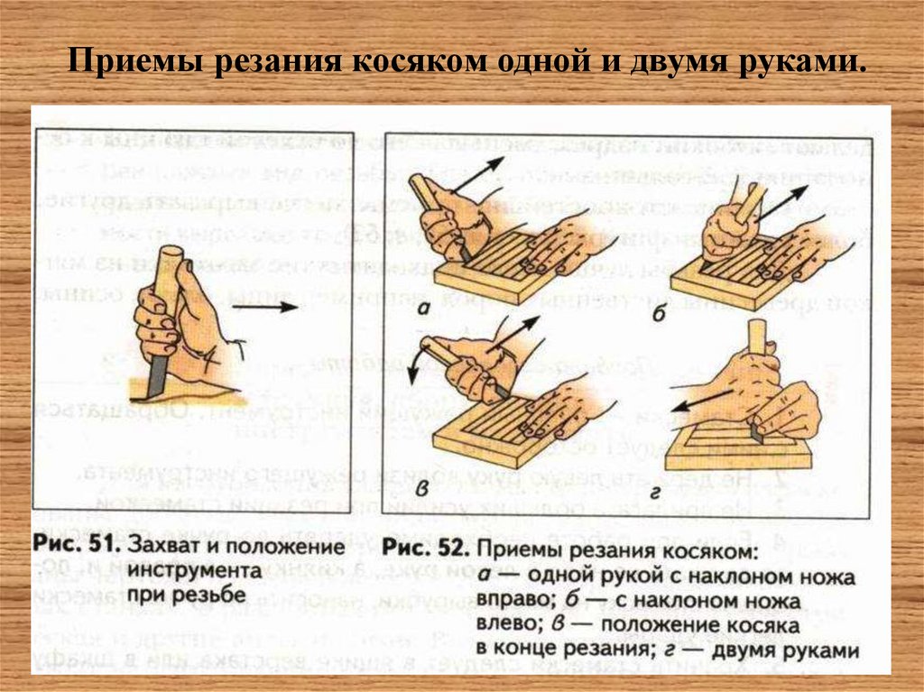 Приемы резания косяком одной и двумя руками.20.