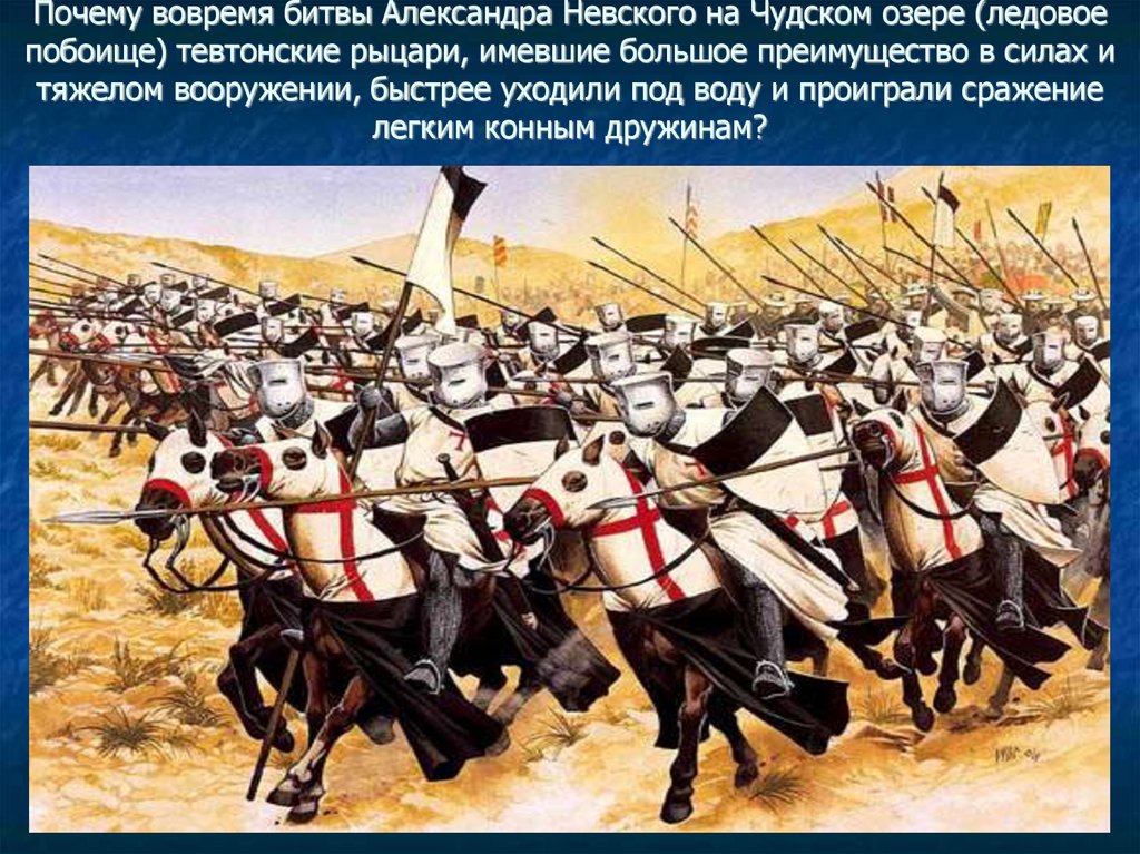 Почему вовремя битвы Александра Невского на Чудском озере (ледовоепобоище) тевтонские рыцари, имевшие большое преимущество в силах и