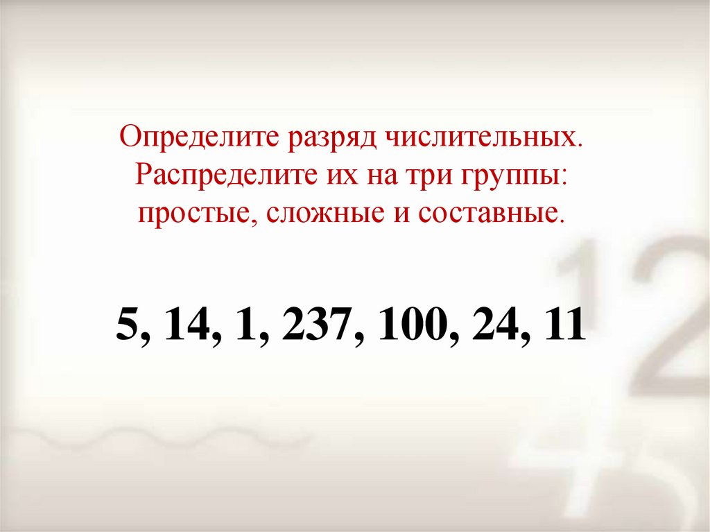 Определите разряд числительных.Распределите их на три группы: