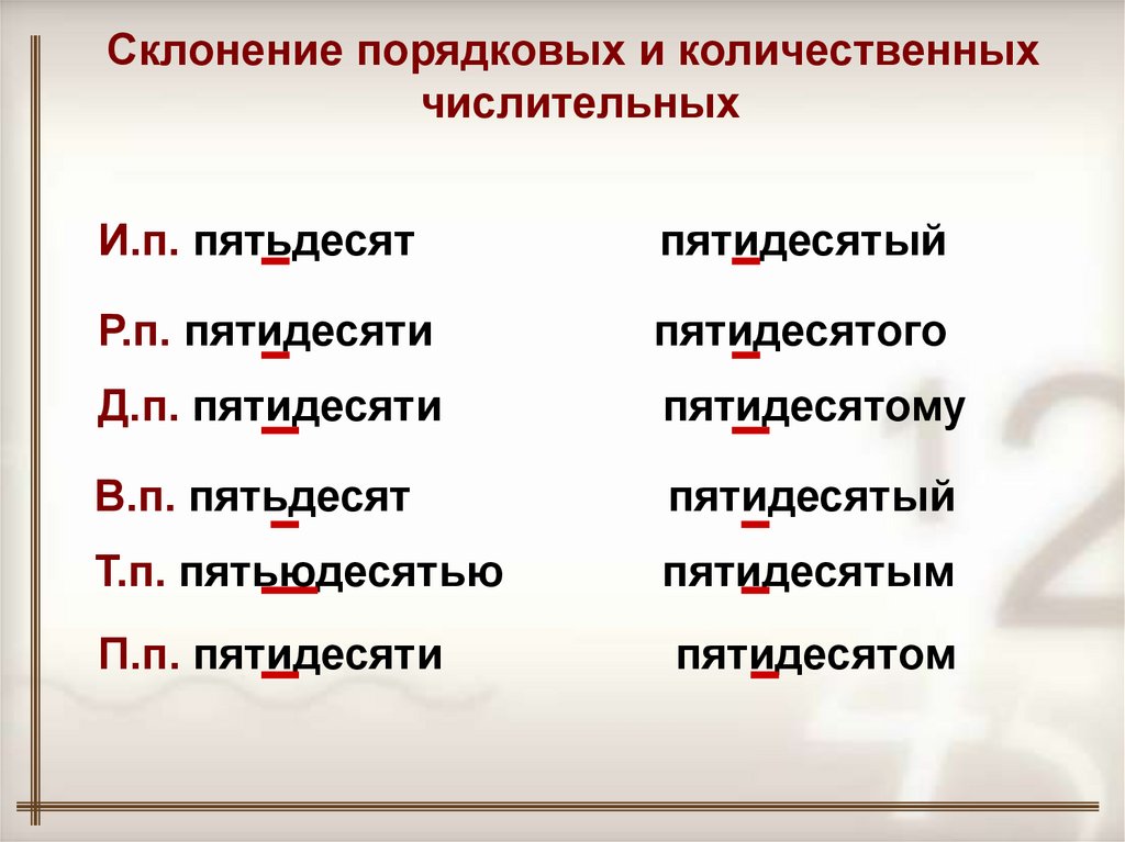 Склонение порядковых и количественныхчислительных