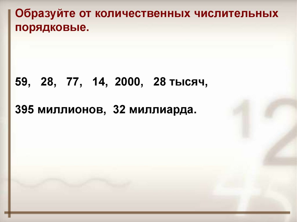 Образуйте от количественных числительныхпорядковые.