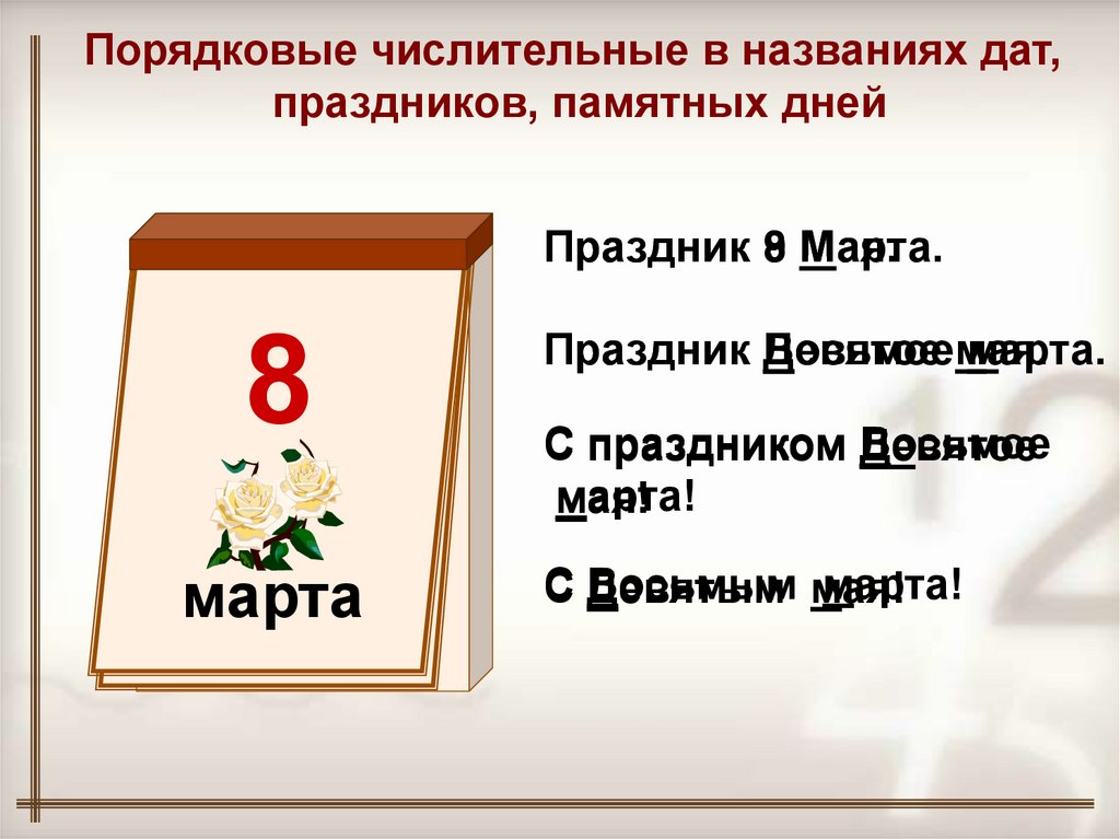 Порядковые числительные в названиях дат,праздников, памятных дней