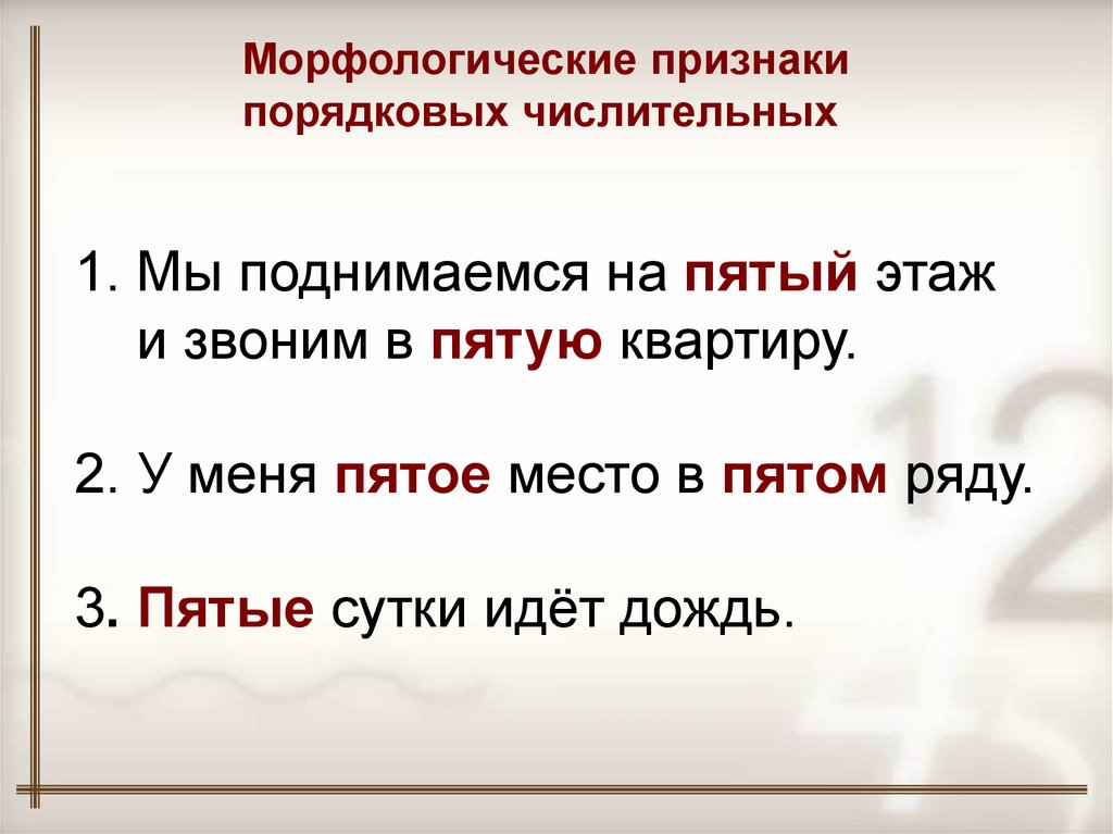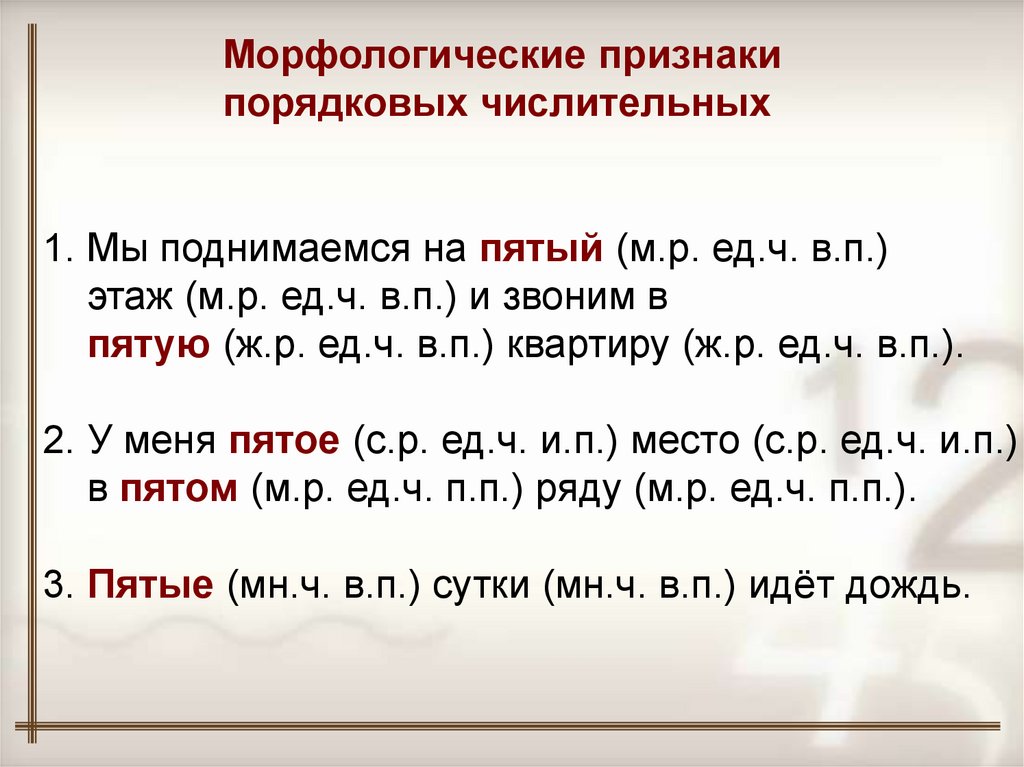 Морфологические признакипорядковых числительных