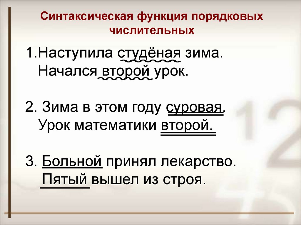 Синтаксическая функция порядковыхчислительных