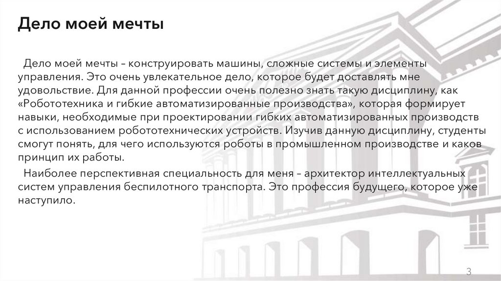 Дело моей мечтыДело моей мечты – конструировать машины, сложные системы и элементы