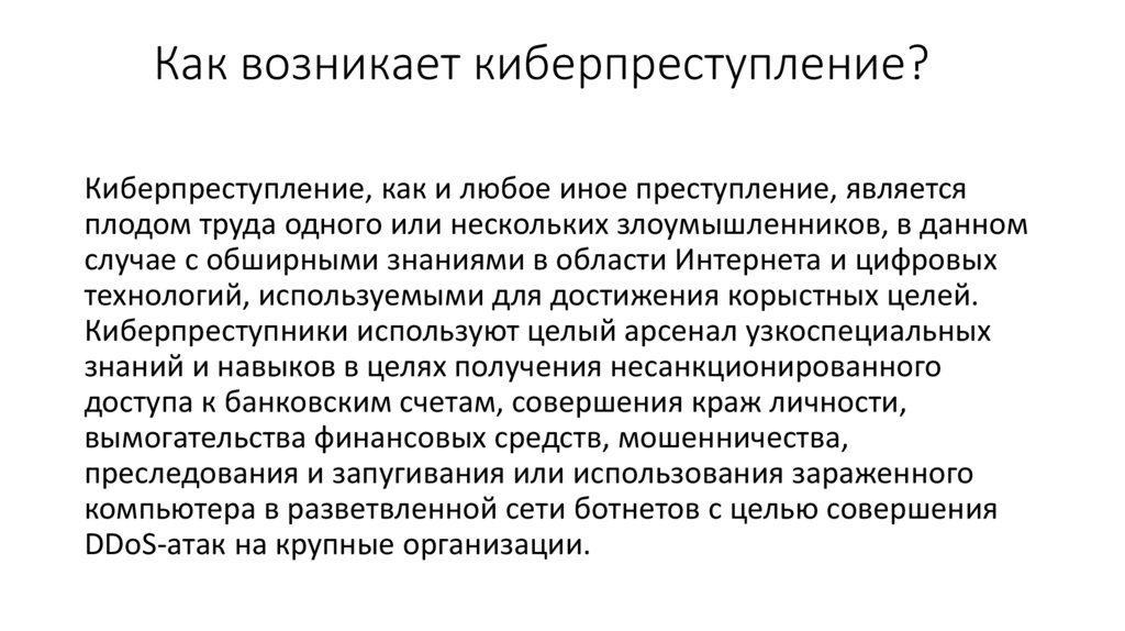 Как возникает киберпреступление?Киберпреступление, как и любое иное преступление, является