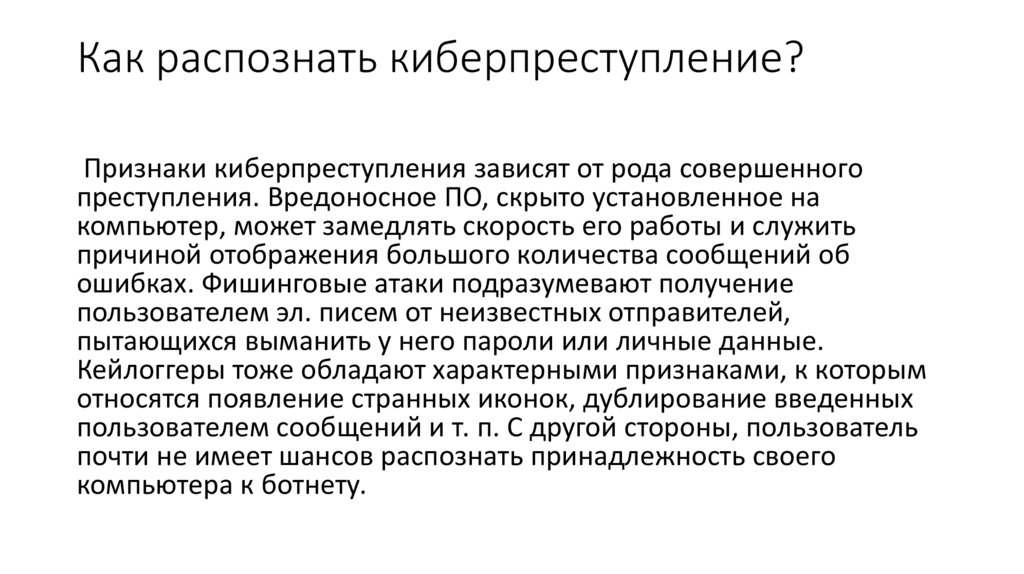 Как распознать киберпреступление?Признаки киберпреступления зависят от рода совершенного