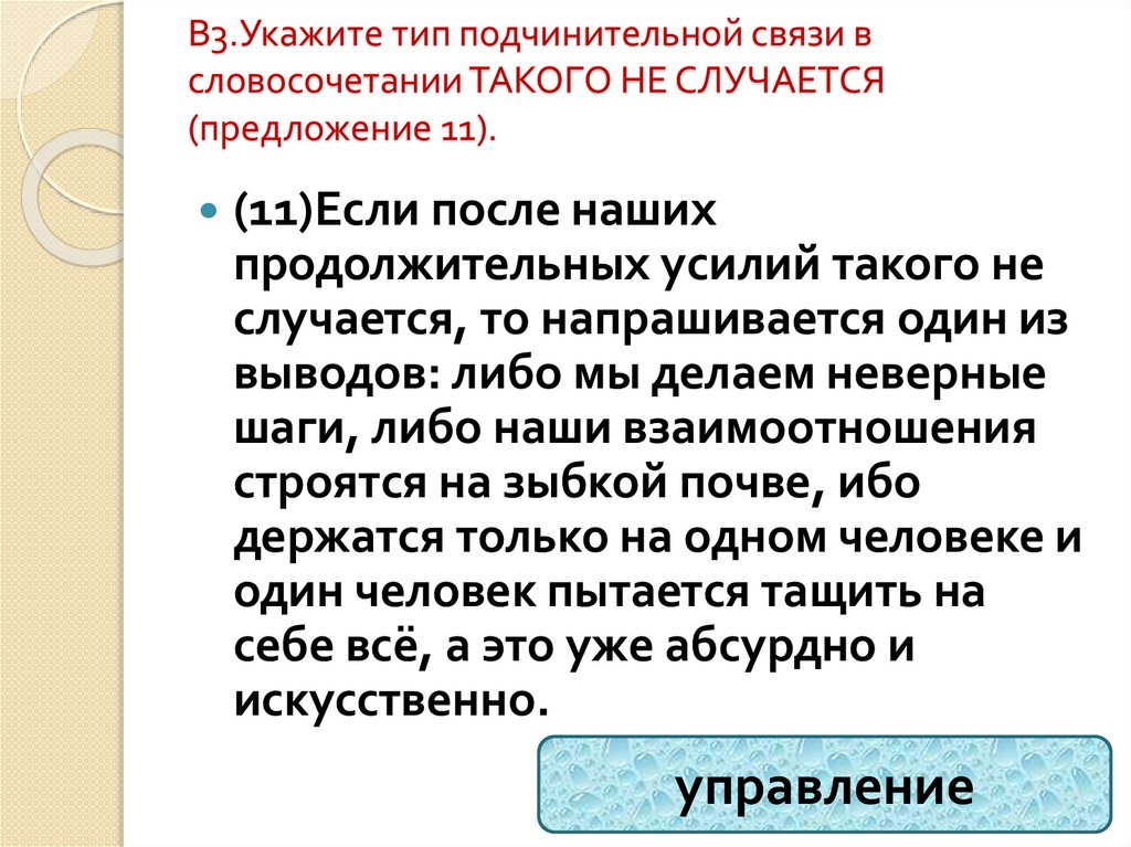 В3.Укажите тип подчинительной связи всловосочетании ТАКОГО НЕ СЛУЧАЕТСЯ