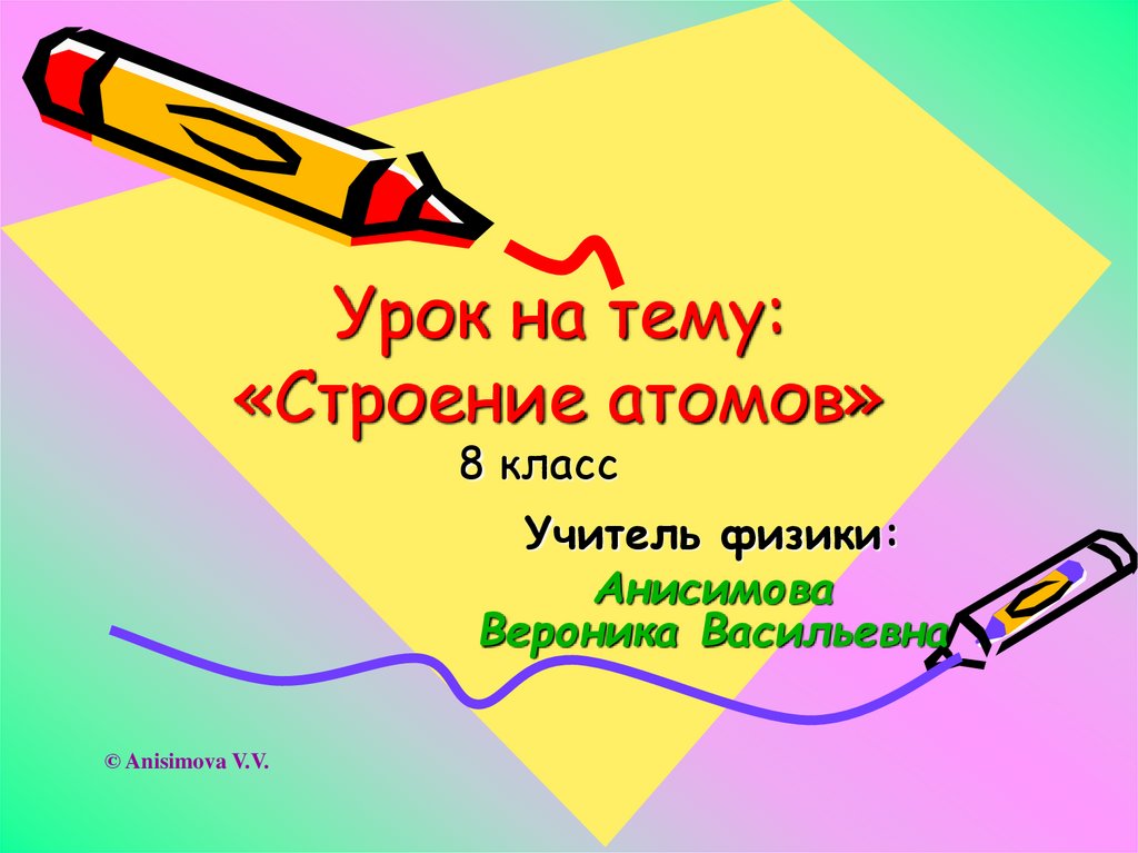 Урок на тему:«Строение атомов»