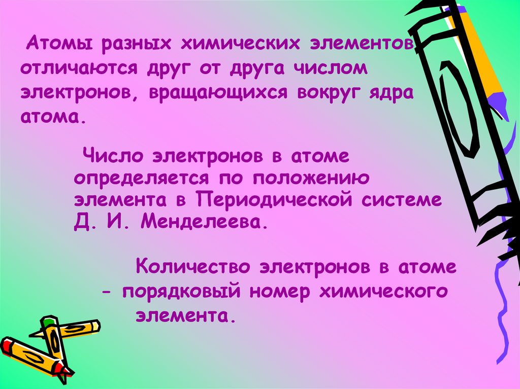 Атомы разных химических элементовотличаются друг от друга числом