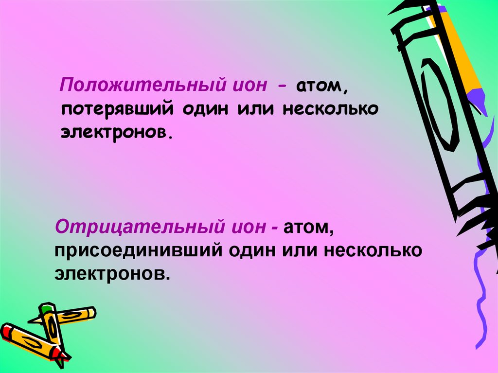 Положительный ион - атом,потерявший один или несколько