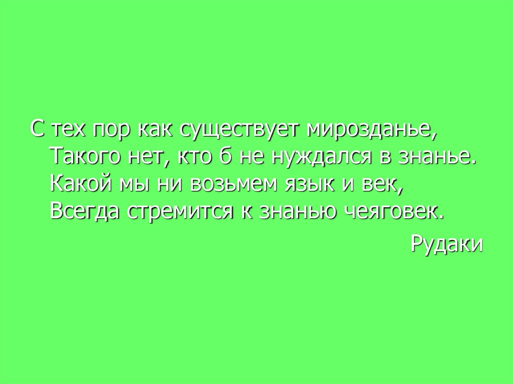 С тех пор как существует мирозданье,Такого нет, кто б не нуждался в знанье.