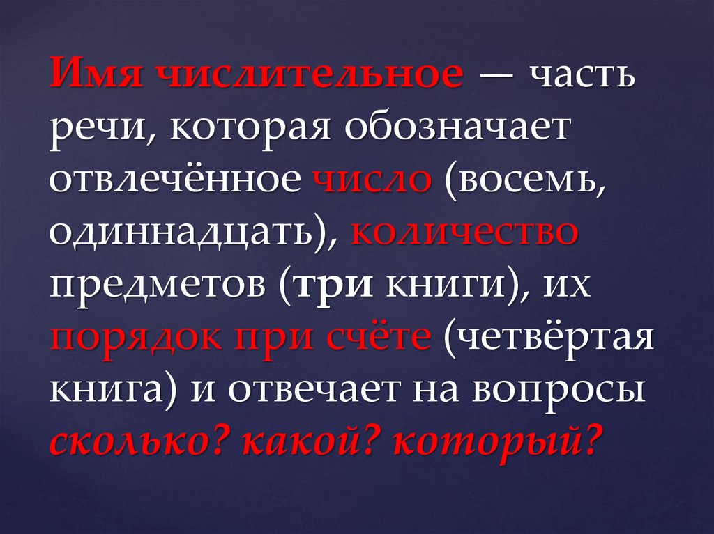 Имя числительное — частьречи, которая обозначает