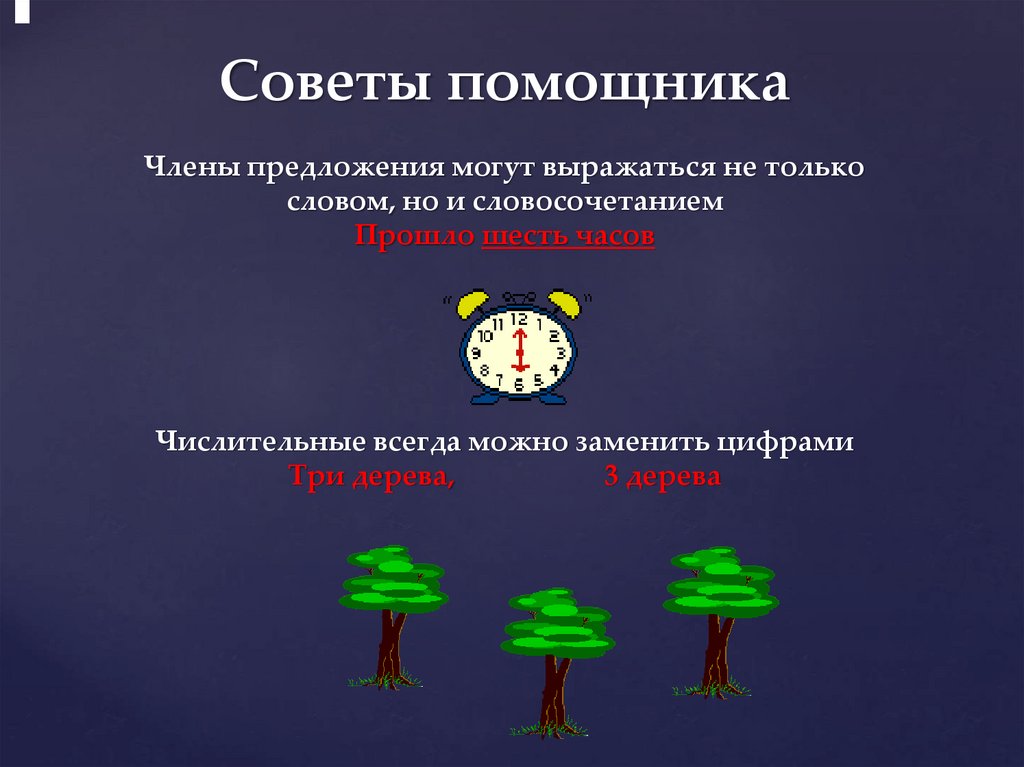 Советы помощникаЧлены предложения могут выражаться не только