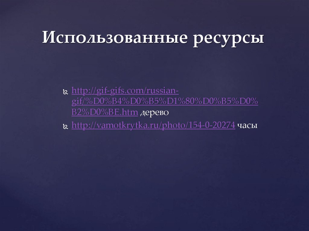 Использованные ресурсыhttp://gif-gifs.com/russiangif/%D0%B4%D0%B5%D1%80%D0%B5%D0%