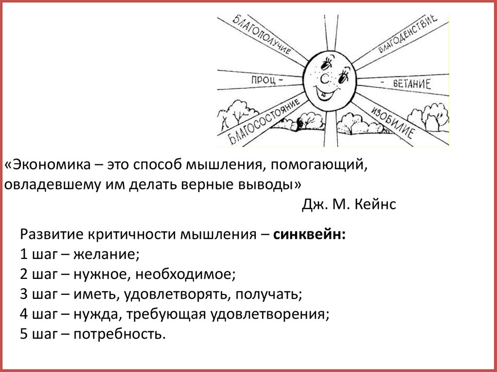«Экономика – это способ мышления, помогающий,овладевшему им делать верные выводы»