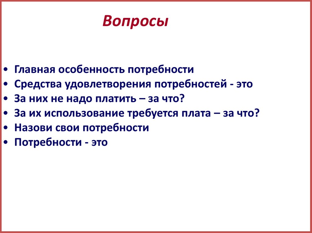 ВопросыГлавная особенность потребности