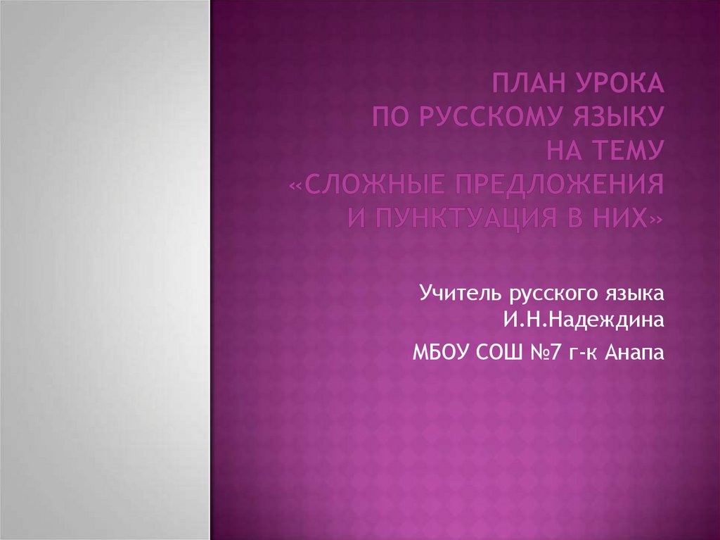 1. План урока по русскому языку на тему «Сложные предложения и пунктуация в них»