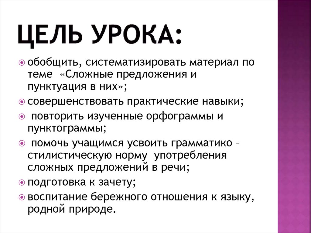 Сложные предложения и пунктуация в них. План урока. 9 класс