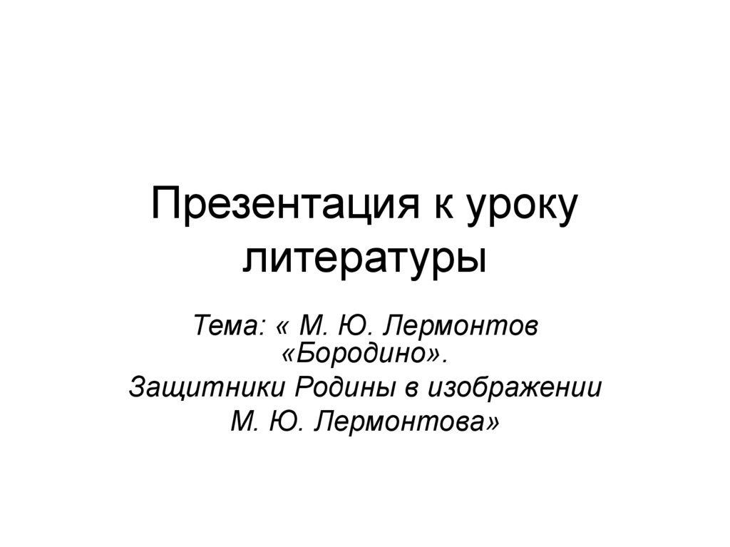 М. Ю. Лермонтов «Бородино». Защитники Родины в изображении М. Ю. Лермонтова