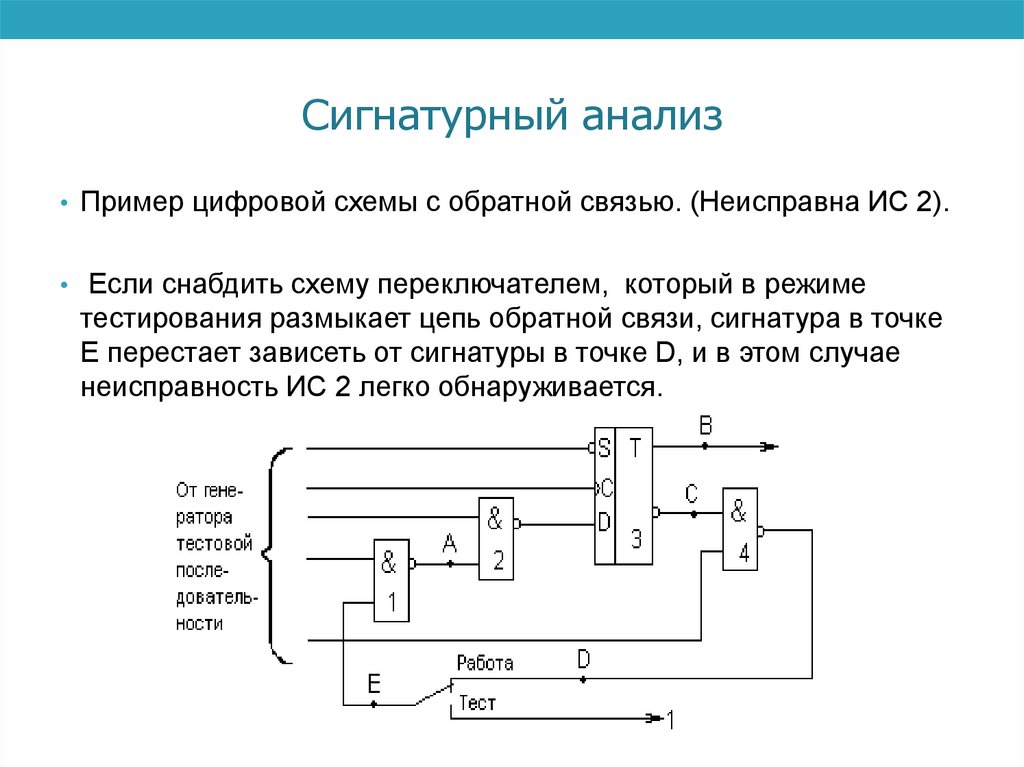 тестирования размыкает цепь обратной связи, сигнатура в точке