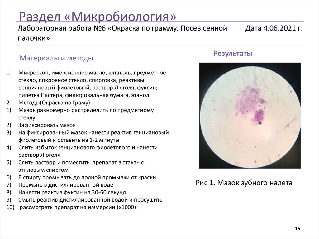 Раздел «Микробиология»Лабораторная работа №6 «Окраска по грамму. Посев сенной