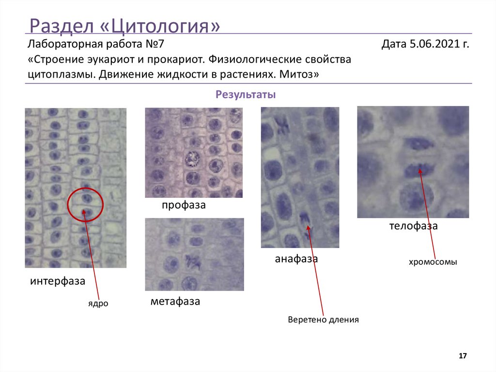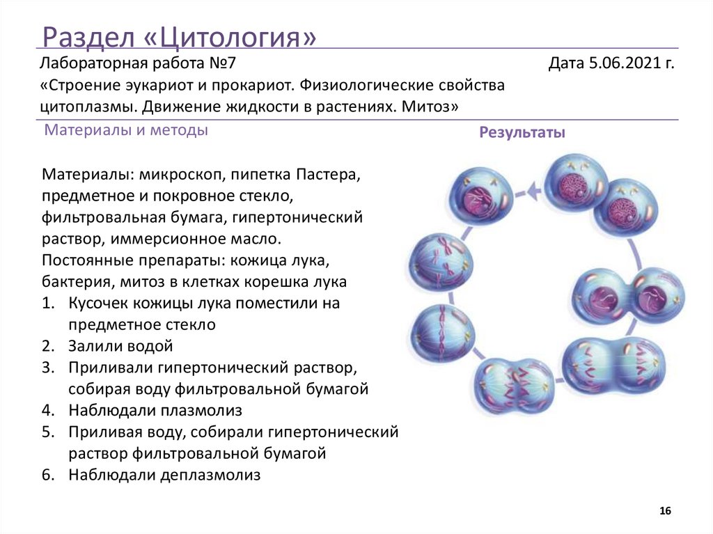 цитоплазмы. Движение жидкости в растениях. Митоз»