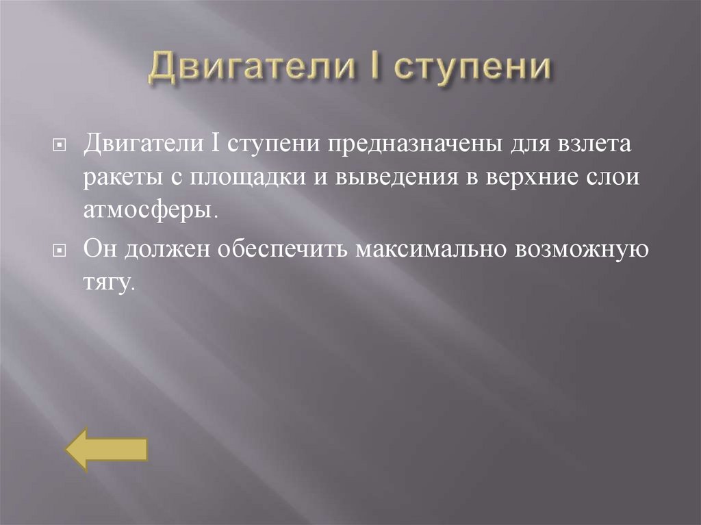 Двигатели I ступени предназначены для взлетаракеты с площадки и выведения в верхние слои