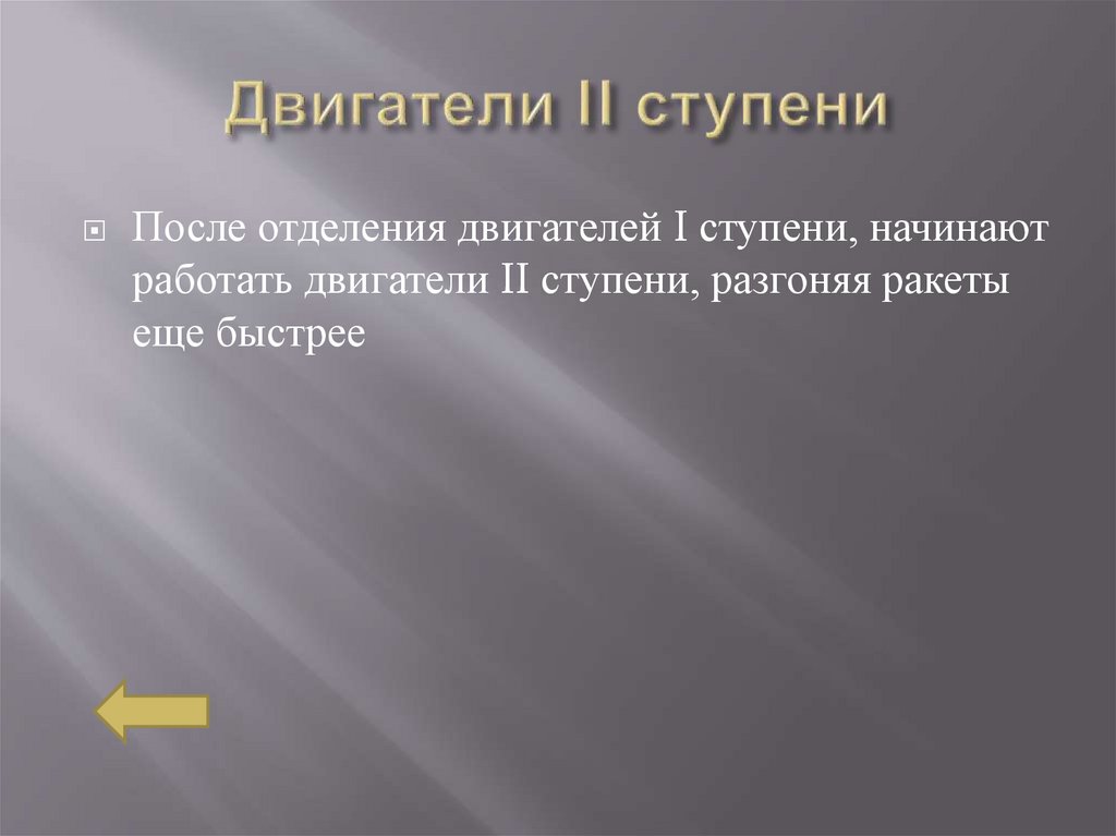 После отделения двигателей I ступени, начинаютработать двигатели II ступени, разгоняя ракеты