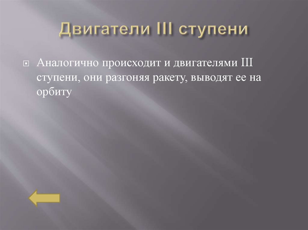 Аналогично происходит и двигателями IIIступени, они разгоняя ракету, выводят ее на