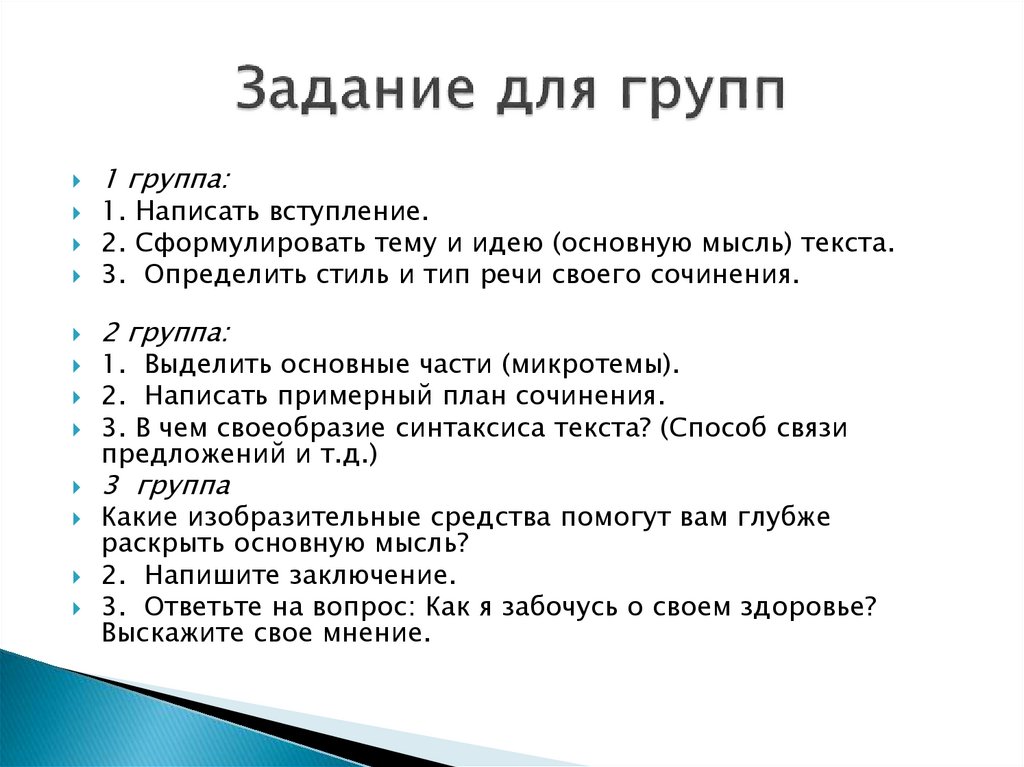 1 группа:1. Написать вступление.