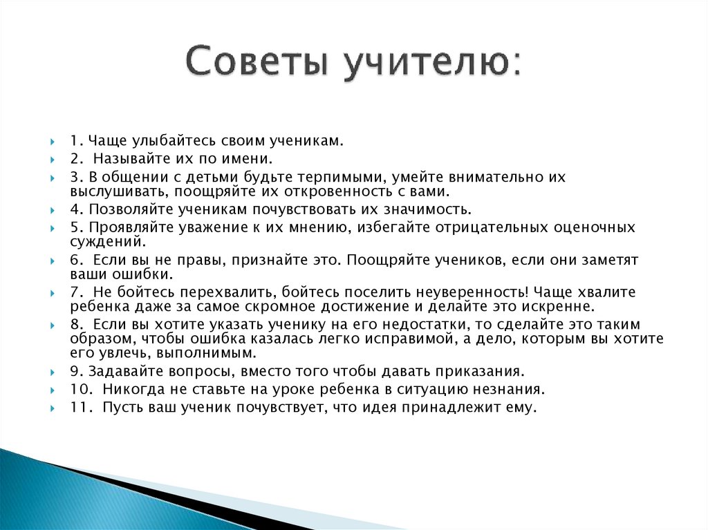 8. Если вы хотите указать ученику на его недостатки, то сделайте это таким