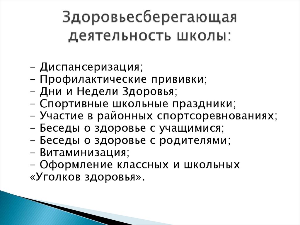 - Беседы о здоровье с учащимися;