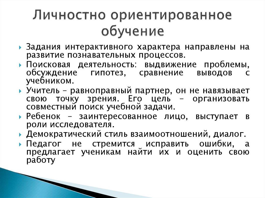 Учитель – равноправный партнер, он не навязывает