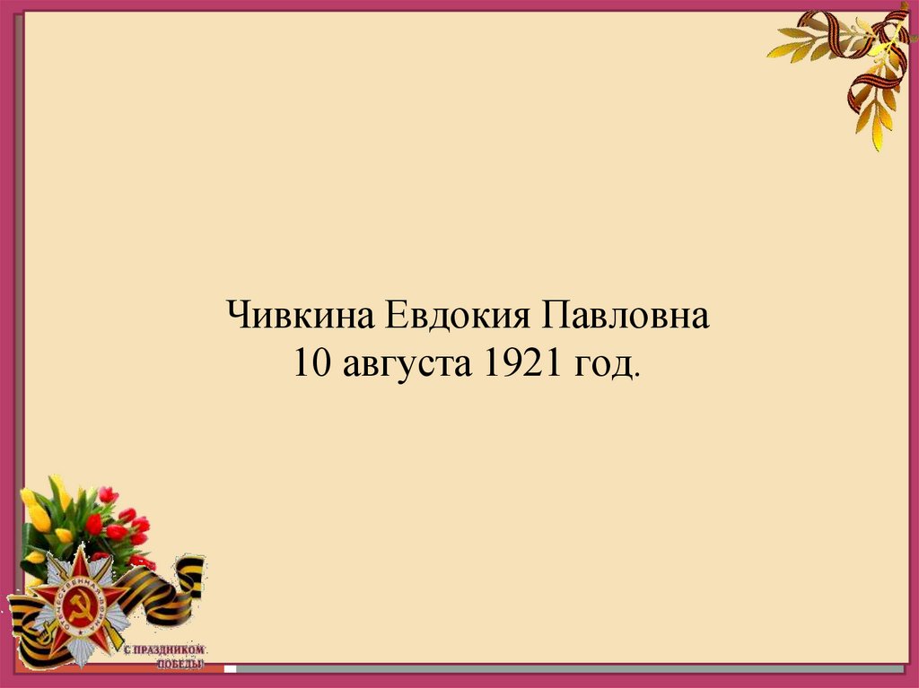 Чивкина Евдокия Павловна10 августа 1921 год.