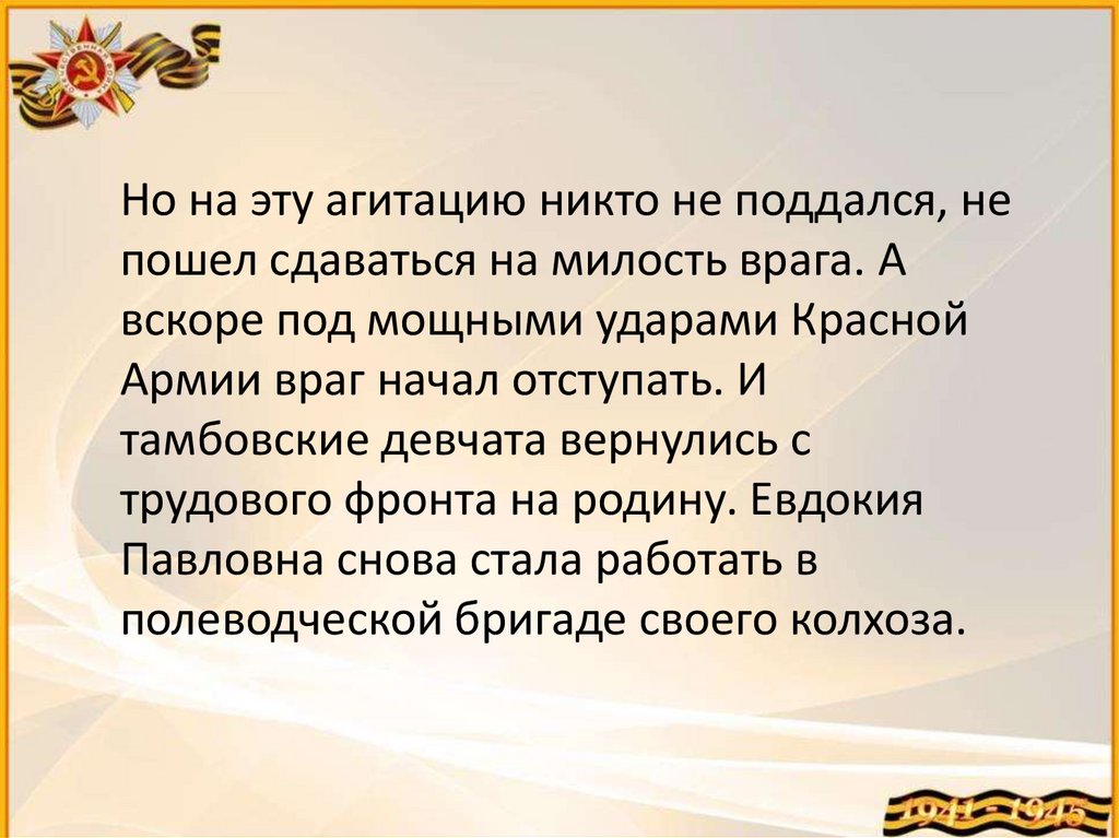 Но на эту агитацию никто не поддался, непошел сдаваться на милость врага. А