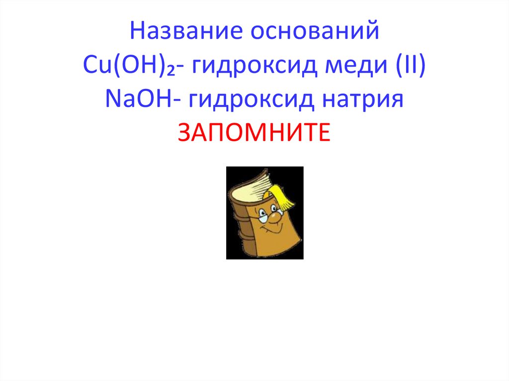 Название основанийCu(OН)₂- гидроксид меди (II)