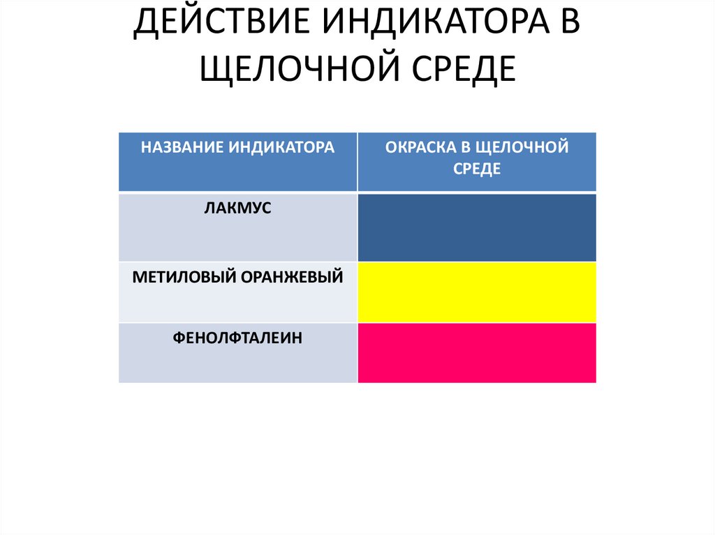 ДЕЙСТВИЕ ИНДИКАТОРА ВЩЕЛОЧНОЙ СРЕДЕ
