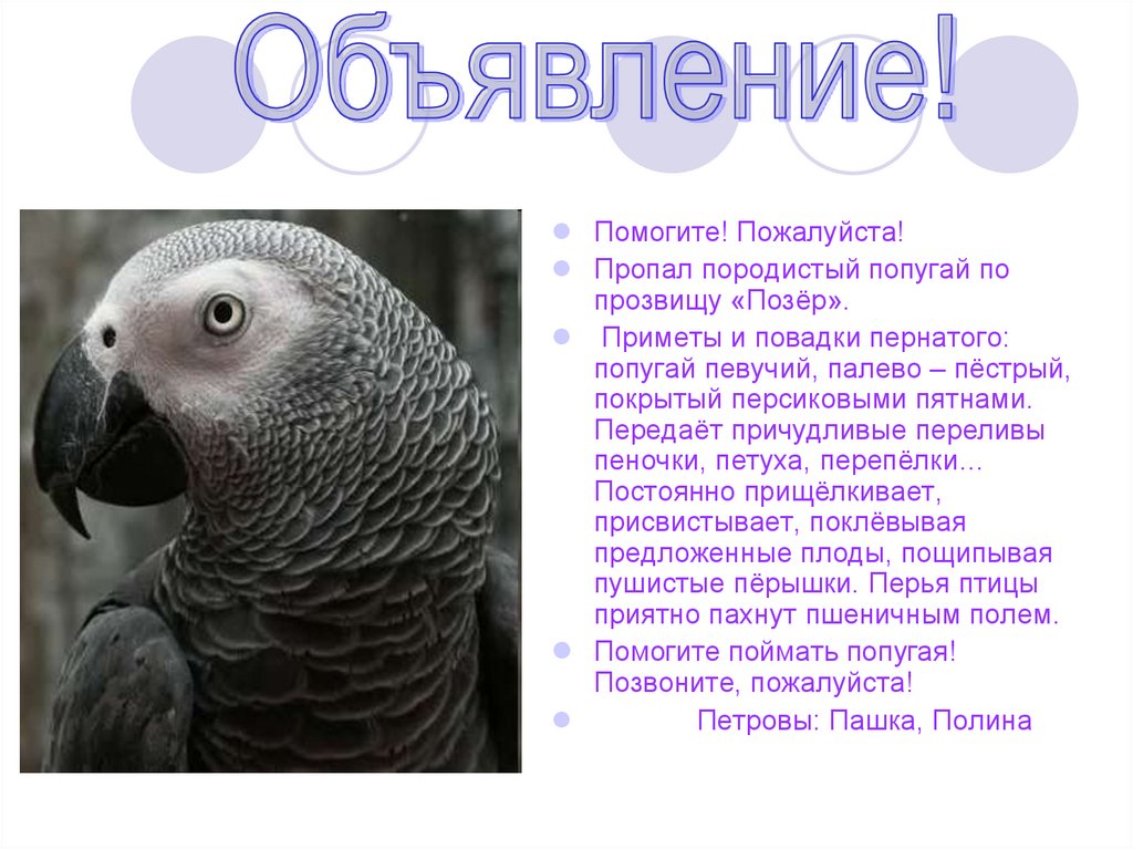 Помогите! Пожалуйста!Пропал породистый попугай по