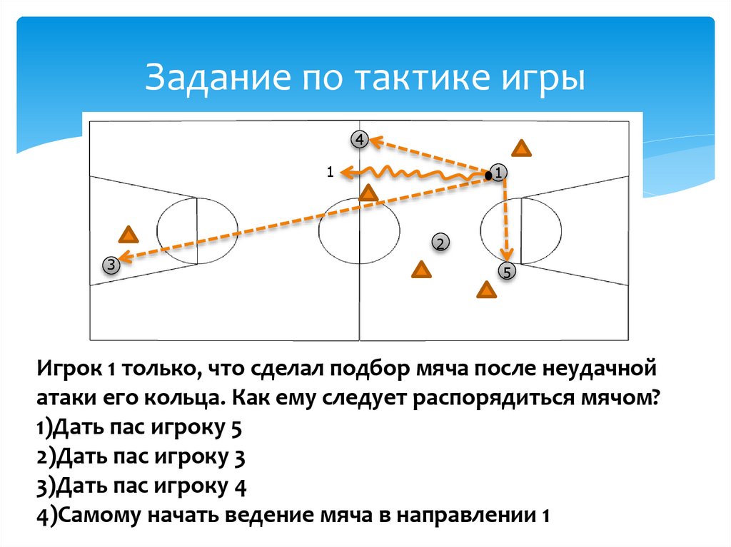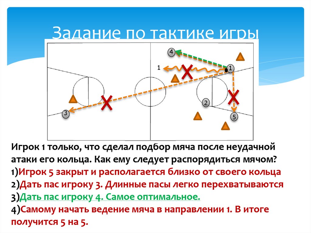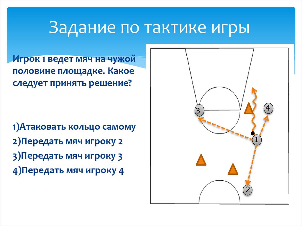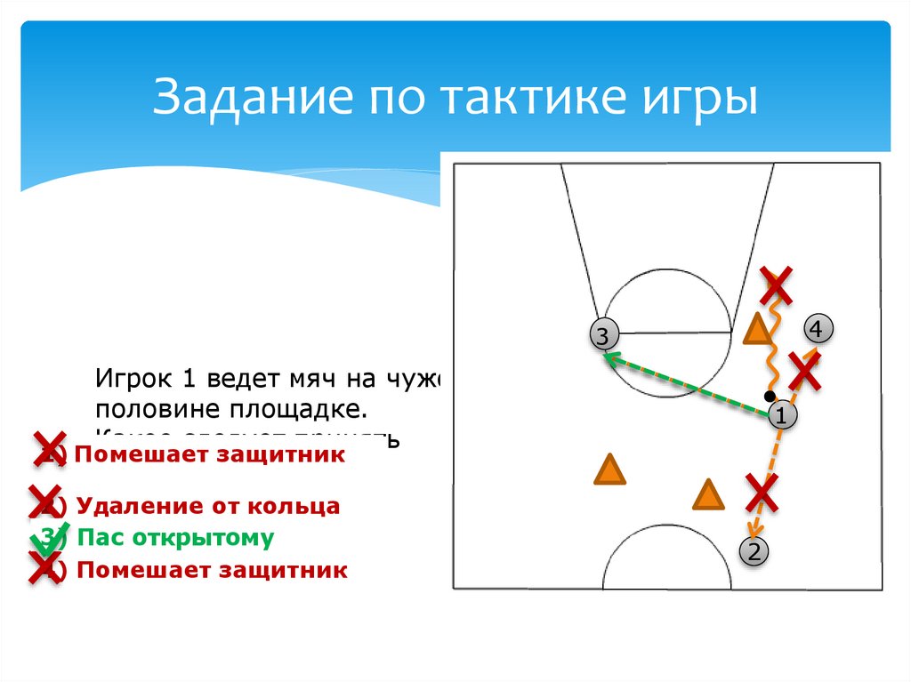 Задание по тактике игрыИгрок 1 ведет мяч на чужой