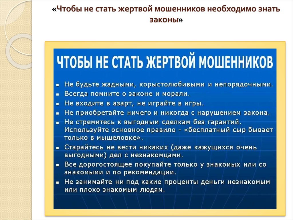 «Чтобы не стать жертвой мошенников необходимо знатьзаконы»