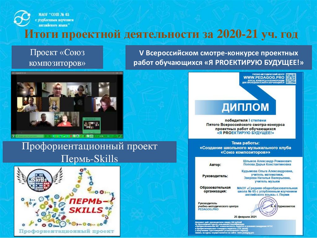 Итоги проектной деятельности за 2020-21 уч. годПроект «Союз