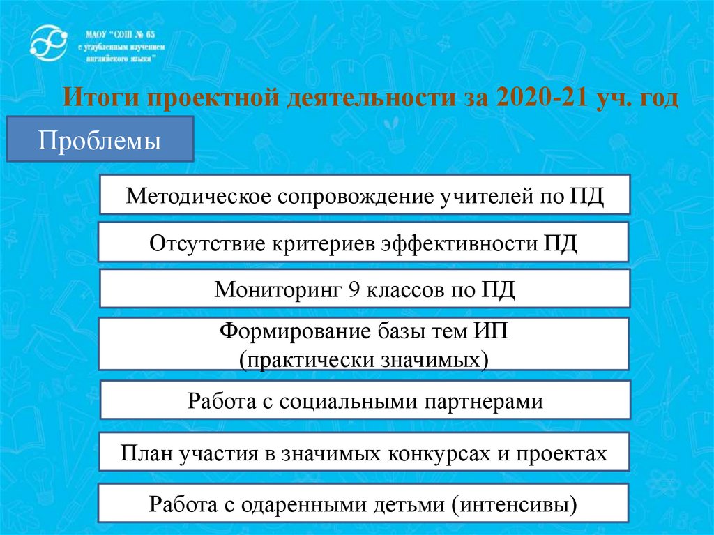 Итоги проектной деятельности за 2020-21 уч. годПроблемы