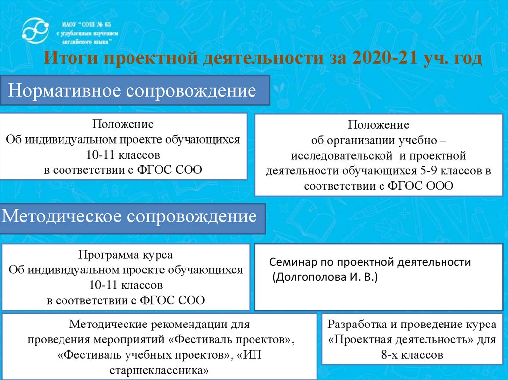 Итоги проектной деятельности за 2020-21 уч. годНормативное сопровождение