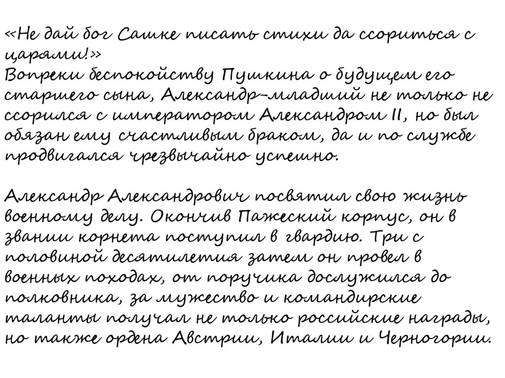 «Не дай бог Сашке писать стихи да ссориться сцарями!»