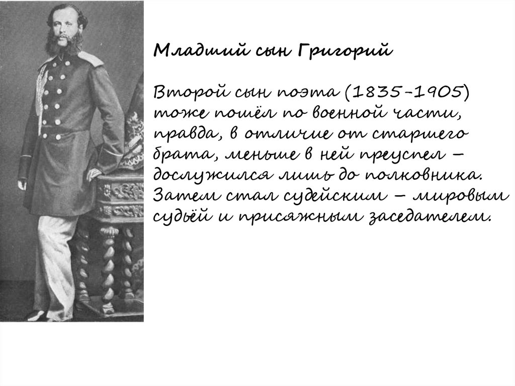 Младший сын ГригорийВторой сын поэта (1835-1905)
