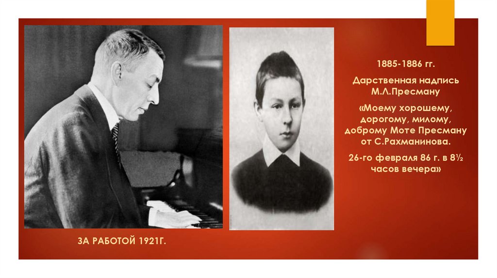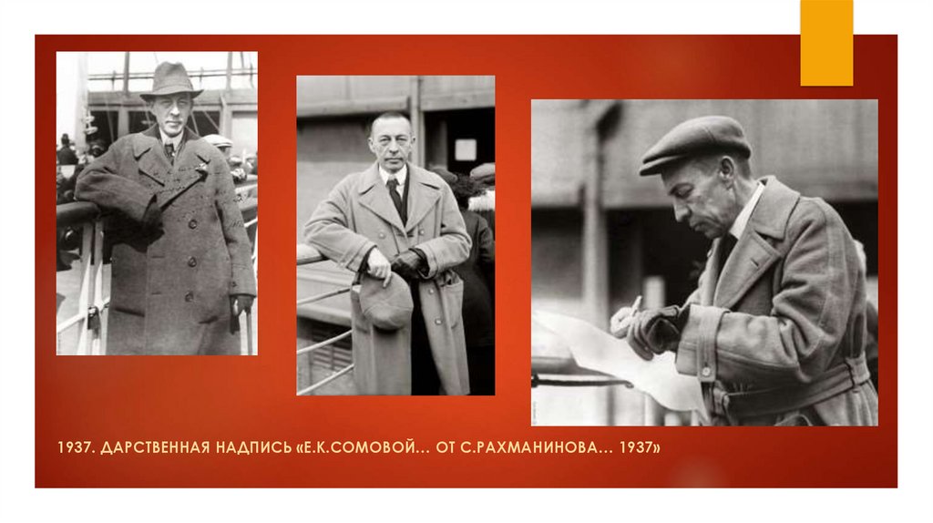 1937. ДАРСТВЕННАЯ НАДПИСЬ «Е.К.СОМОВОЙ… ОТ С.РАХМАНИНОВА… 1937»10.