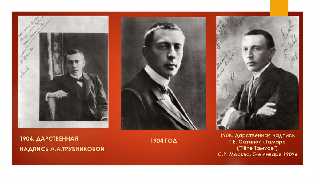 1904. ДАРСТВЕННАЯНАДПИСЬ А.А.ТРУБНИКОВОЙ