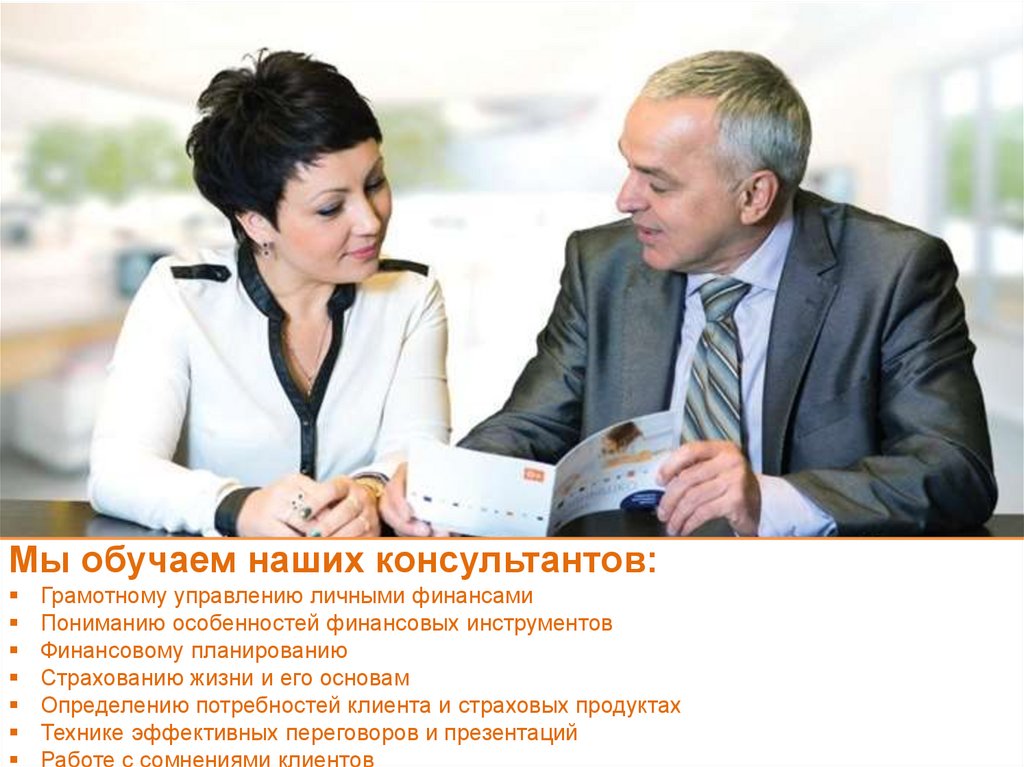 Мы обучаем наших консультантов:Грамотному управлению личными финансами